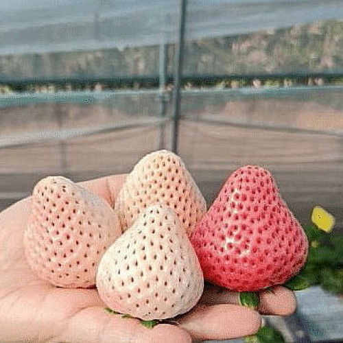 Мэнчжиин / Фруктовая звезда - новый сорт бело-розовой клубники из серии «Мечта», который был разработан командой Шэнь Лань в 2018 году и стал настоящим открытием в мире ягод. Он быстро завоевал популярность в Китае благодаря своим выдающимся характеристикам.